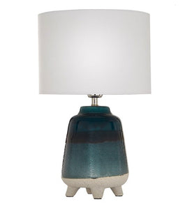 You can practically feel the sand in between your toes with this distinctive coastal table lamp. Elevated by its ceramic legs, the eye-catching textured sandy coloured base transitions into rich gloss blues.
